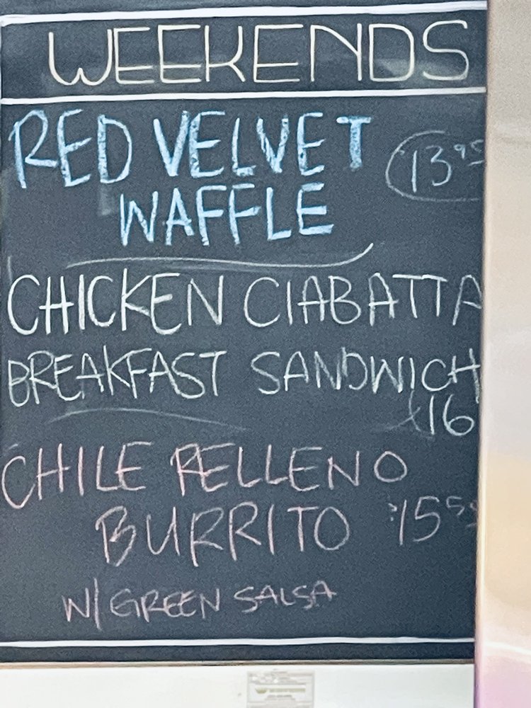 Denver omelet, cheese, avocado, bacon and served on a brioche served with breakfast potatoes or fruit.